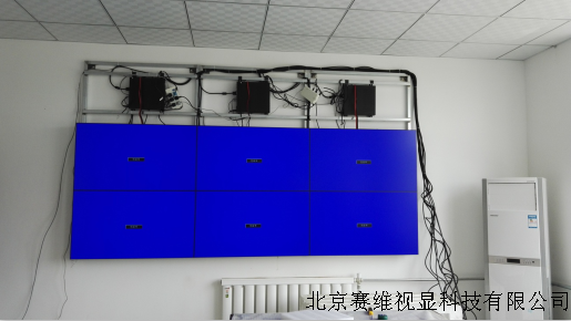 三星46寸液晶拼接屏壁挂式安装调试(例3*3) 1,根据空间大小,观看位置,选择最佳的左右,上下位置。一般左右居中, 上下以不用仰视为最好位置,(0.8米-1.2米高)以现场为准!利用红外水平仪或水平尺等工具作好水平调准,定位,固定好壁挂支架! 2,固定好拼接盒子,连接好信号线,电源线,通讯线等,挂上底部一排,作好水平,垂直的校准! 3,继续挂装,调节,边通电检测 4,安装完毕!